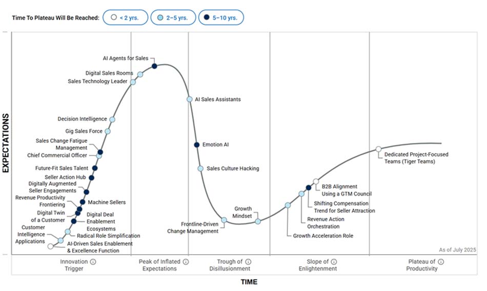 Gartner’s Hype Cycle for Sales Transformation, 2025 highlights the AI, advanced technologies and organisational innovations powering this transformation and driving sales organization success.