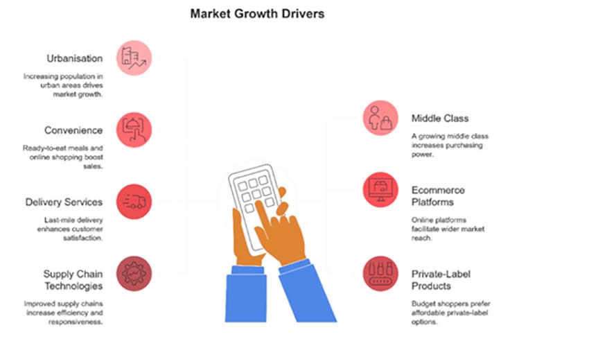 Another key factor is the expansion of private-label products, which appeal to budget-conscious shoppers.