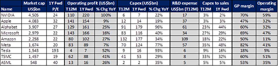 In other words, the market is implicitly assuming that AI capex could potentially drive a world where operating profits double over the next three to four years.