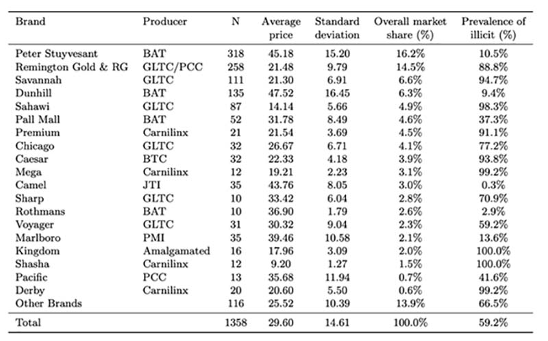 This study is novel in that it identifies specific brands and producers linked to illicit trade (See the summary table below).